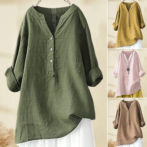 🔥【Časovo obmedzená ponuka】【S-5XL】Dámske letné nové voľné pohodlné priedušné bavlnené a ľanové tričko ležérne jednofarebné