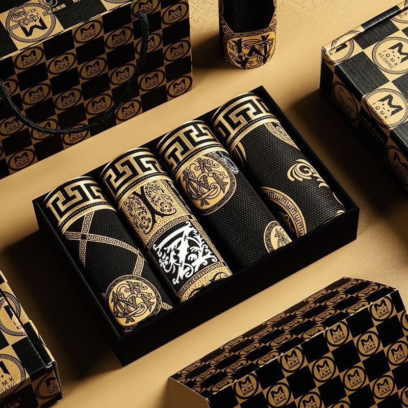 🚹✅💥【40–140 kg】Dihajoče spodnje perilo iz ledeniškega svile za moške, udobno brezšivno spodnje perilo, večje velikosti, moderen potisk